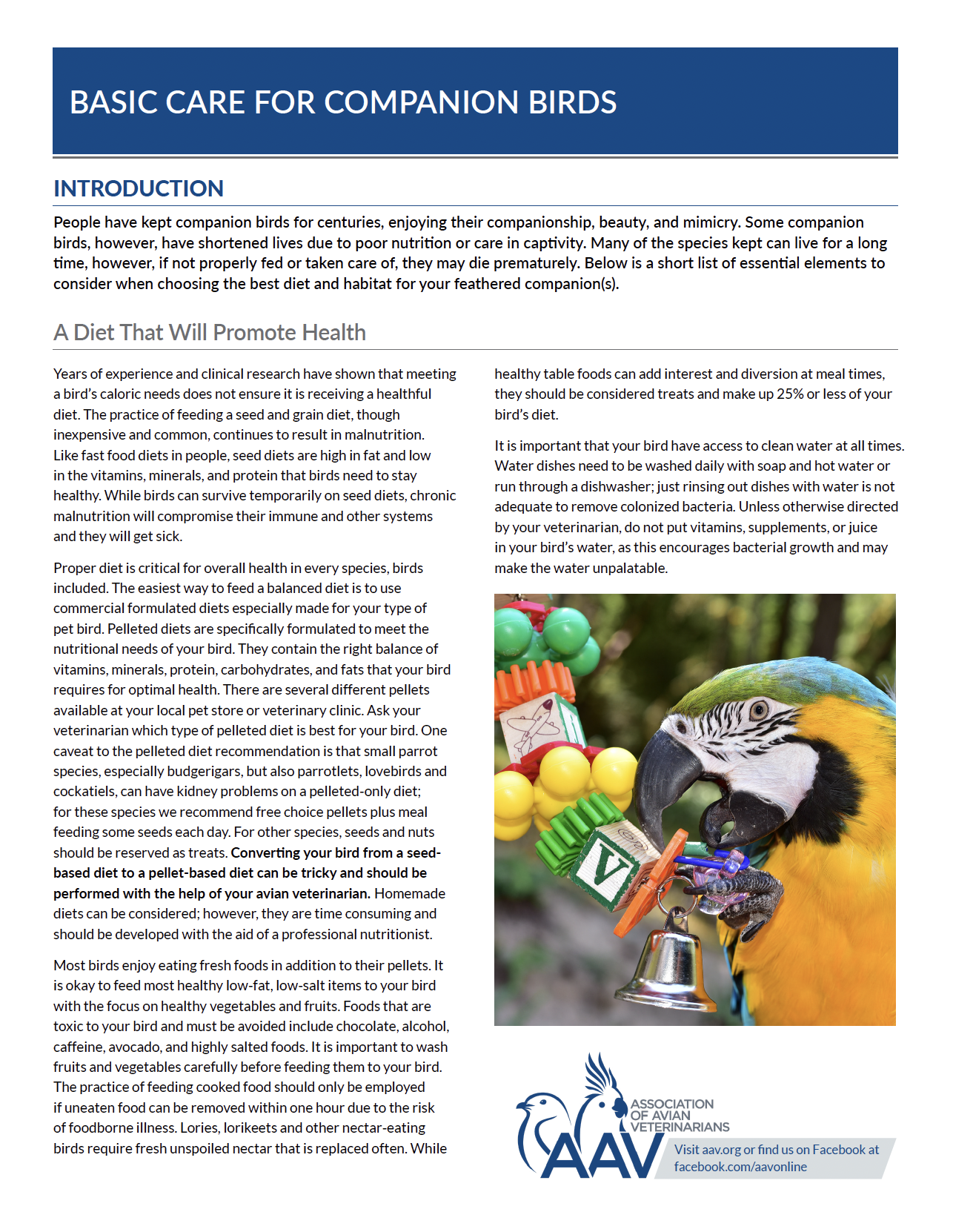 Information about basic bird care, avian illness, and keeping your bird safe and healthy.